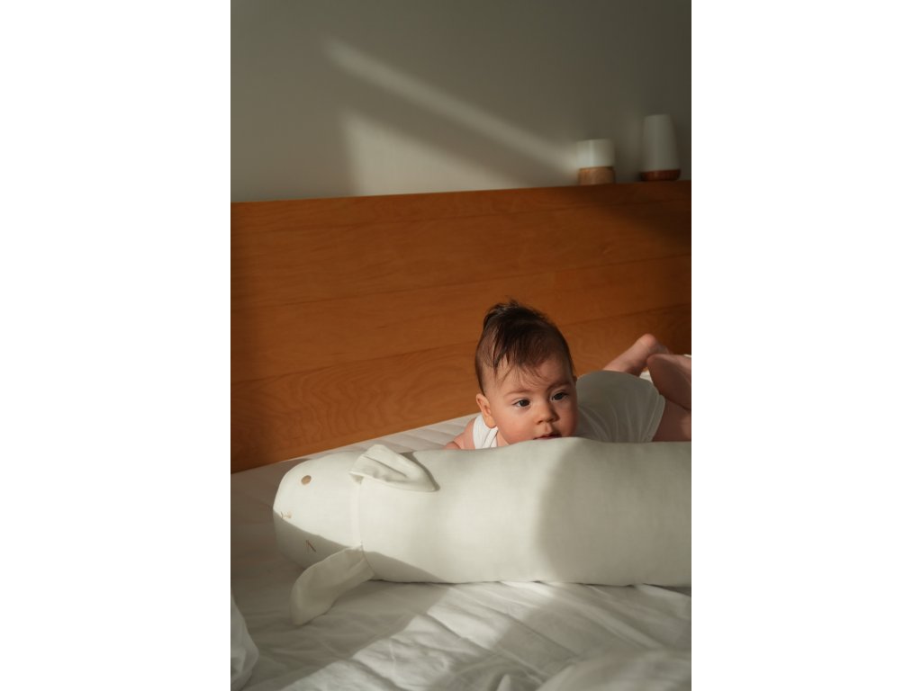 The soft, doggy-shaped bumper will be a great companion for your child’s cot. The bumper will ensure that your baby doesn’t bump into its construction or stick tiny limbs through the bars. For bigger babies, it will prevent them from falling out of larger beds. The bumper will protect the baby during restless sleep, and in moments of wakefulness, it will attract them with its cute appearance and pleasant material that invites to cuddle. The bumper cover is made of soft and extra-pleasant to the touch organic cotton.