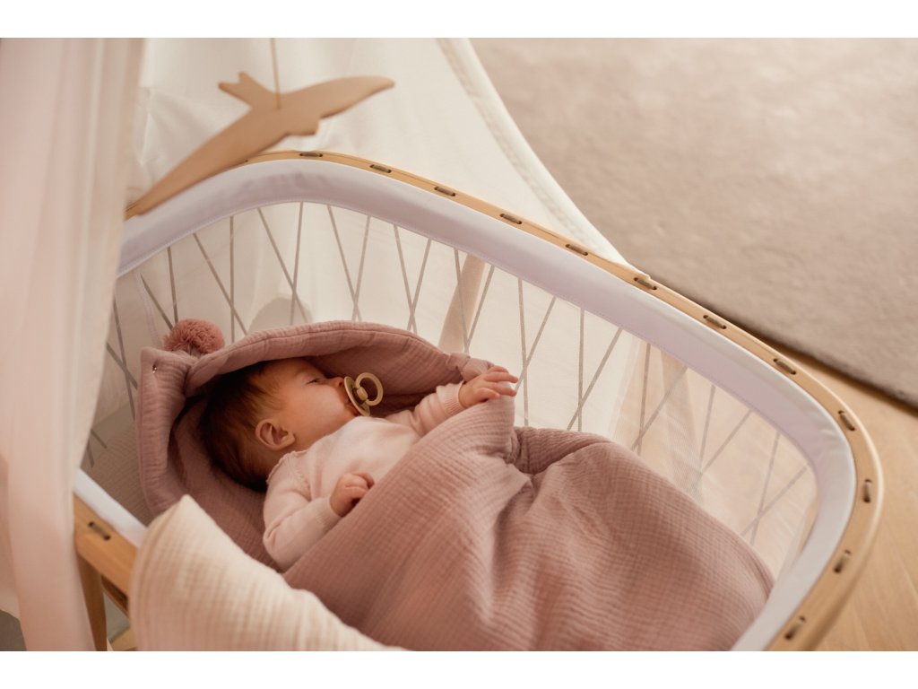 When the baby starts to turn on its own, we recommend that you let your baby sleep in the sleeping bag with the hood open to avoid reduced air circulation if the baby turns over.