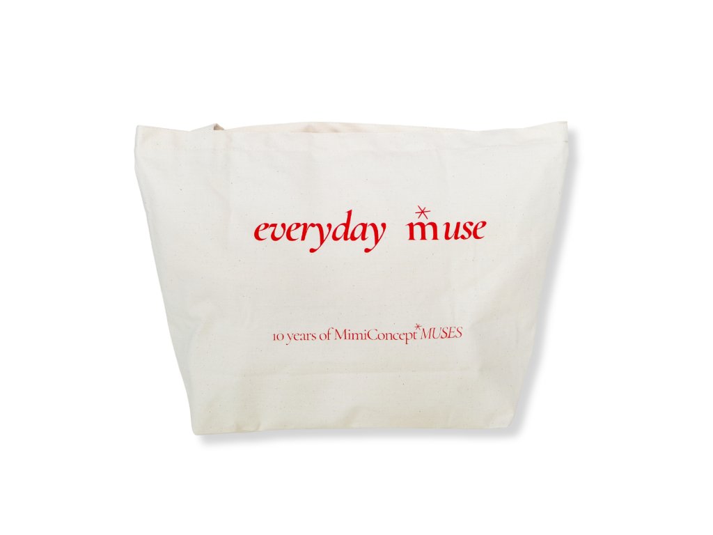 Design je oboustranný – z jedné strany na vás najdete nápis „Moms Vacation – aka no vacation“, z druhé strany „Everyday Muse – 10 years of MimiConcept Muses“.