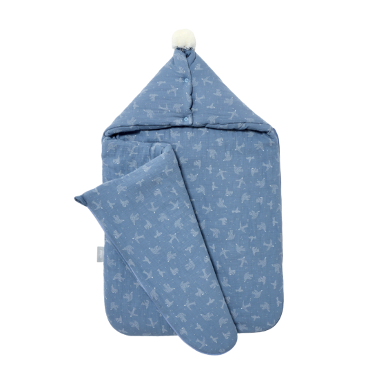Lehký fusak s kapucí z organické bavlny je vhodný pro děti od 0 do 6 měsíců. Jemně tkaná prodyšná textilie patří mezi jednu nejjemnšjčích tkanin a s každým praním se stává jemnější.