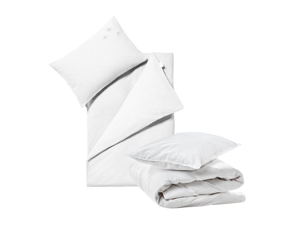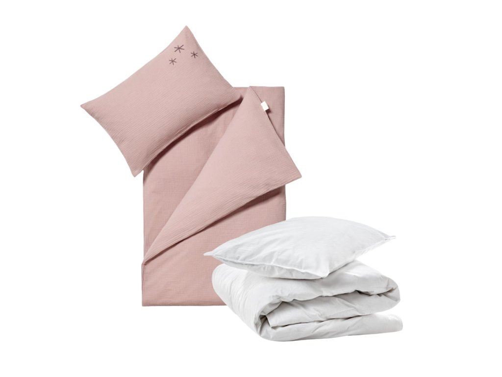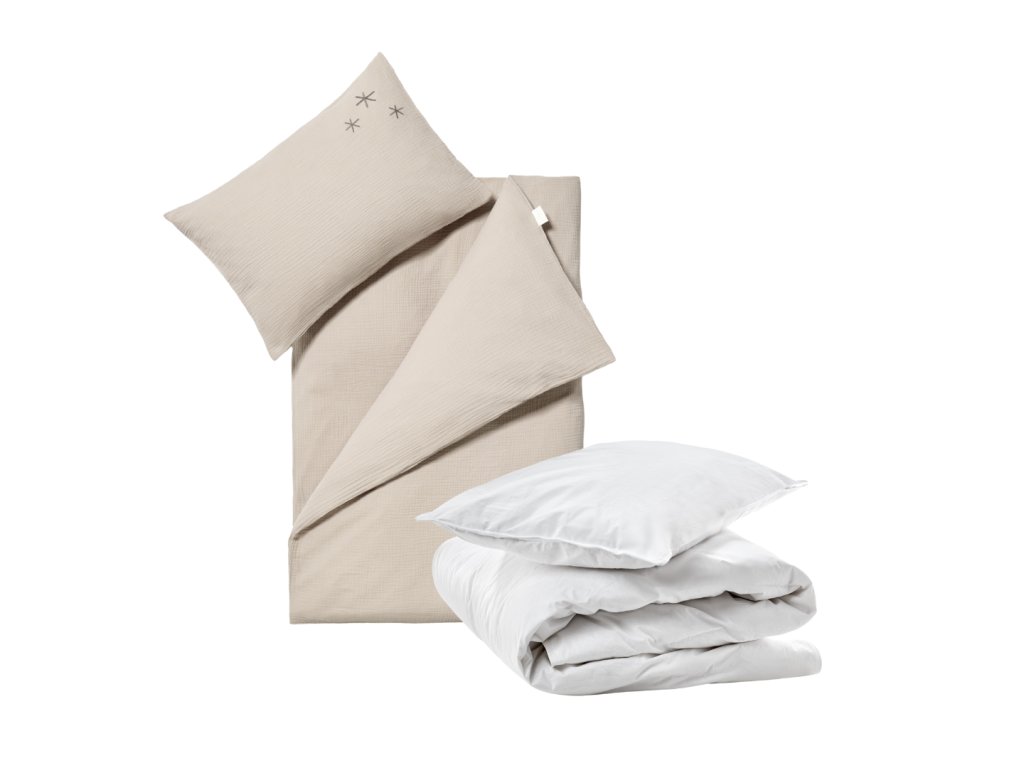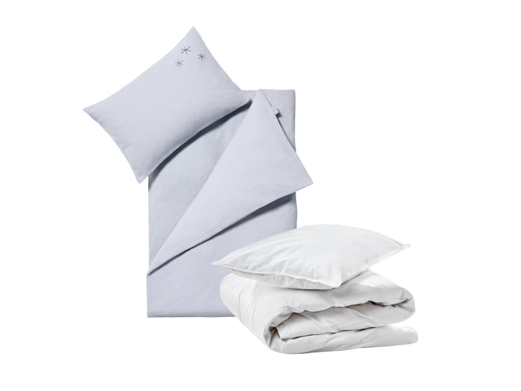 Součástí setu je povlečení z jemného organického mušelínu, které je prodyšné, hebké a šetrné k citlivé pokožce. Rozměrově perfektně padne na naši peřinku i polštář, takže máte jistotu, že všechno krásně ladí a okamžitě pasuje k sobě.